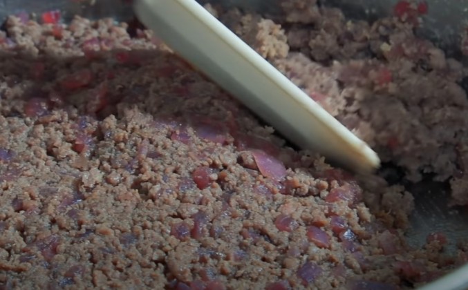 2. И это так хорошо выглядит, что я усилю этот эффект. Я ещё добавлю гранатового сока и сахара. Но раз я слово "кебаб" сказал, значит надо говорить второе слово. Раз кебаб, значит мясо. Мясо сегодня говядина. Это очень хорошее мясо, очень нежное. Его вообще на шашлык можно было бы пустить, но я, скрепив сердце, опускаю эти роскошные лакомые кусочки прямо в мясорубку. Посмотрите какой лук. Вы посмотрите какой лук. Просто красавец, а не лук. Теперь я к этому луку добавлю мясо. И мясо я лишь слегка припущу и приправлю. Лук у нас получился очень ярким, кисло-сладким, но я вижу, что фарш несколько суховат. Ну и что? Вот есть у меня еще ложка топленого масла, я добавлю, и получится хорошо. Но сначала фарш надо посолить. Возьму 2 полные чайные ложки соли, думаю, не меньше. Раз в фарше уже есть сахар, то и специи должны быть подходящие к сладкому. Перво-наперво я хотел бы добавить корицы. Я выбрал молотую корицу "Индана". И перец чёрный тоже "Индана". Давайте посмотрим, какова у них корица. Ох, слушайте, я только пакетик надрезал, а оттуда таким Востоком дохнуло. И черный перец "Индана". Лучше я в наших магазинах пока просто не встречал. Вот черного перца я хочу добавить хотя бы 1,5 чайные ложки. Пусть будет чуточку поострее. Я хочу, чтобы то, что у меня получилось, немножко обжигало рот, чтобы было кислое, сладкое, пряное, очень вкусное.