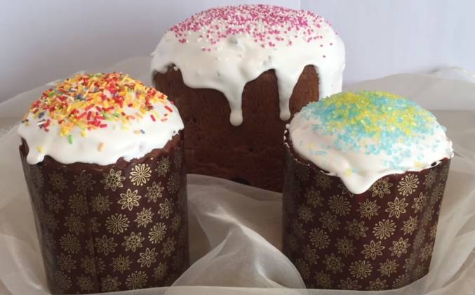 7. Обмакну их по очереди в глазурь, по бокам разровняю глазурь лопаткой. Большой кулич выйму из формы украшу глазурью с подтёками. Сверху присыплю разноцветными посыпками и оставлю остывать на решётке. Один кулич разрежу и покажу вам, какой он получился внутри. Бумажная формочка очень легко снимается. Кулич получился ровный со всех сторон, хорошо пропёкшийся. Тесто очень мягкое, упругое, красивого жёлтого цвета, очень ароматное и необыкновенно вкусное!! Приятного аппетита!Видео рецепт ютуб ниже 👇