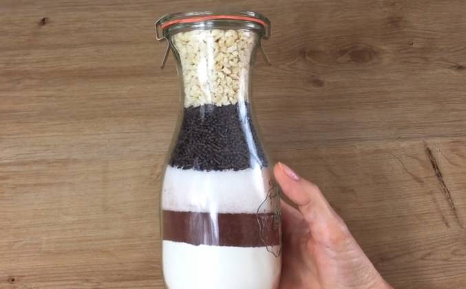 Шоколадный брауни с орехами - рецепт который обязательно понравятся всем шокоголикам, ведь они получаются мега-шоколадными с кусочками шоколада и орехами. И даже не верится, что рецепт очень простой и получится даже у неопытных кулинаров. Я как-то вам уже показывала, как сделать своими руками оригинальный, необычный подарок в бутылке. Я делала такие подарки и у меня осталась одна лишняя бутылочка. И сейчас я её использую и заодно покажу вам как превратить содержимое бутылочки в замечательную выпечку.