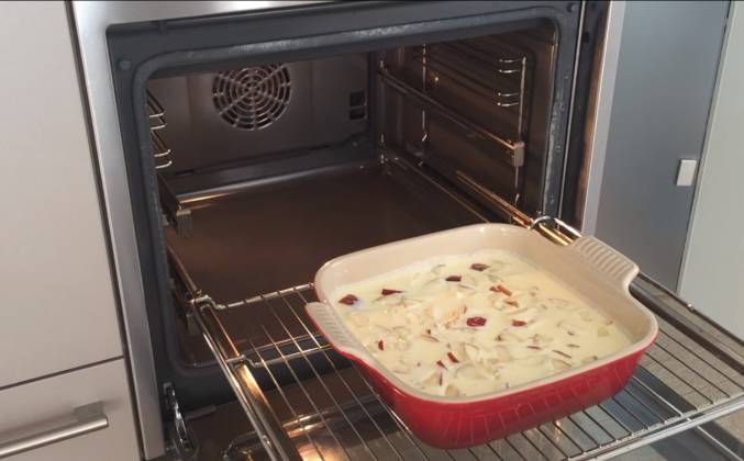 3. Запеканку ставлю выпекаться в предварительно разогретую духовку на 180С на 30 минут. Затем уменьшу температуру до 160С и буду запекать ещё 20-30 минут. Время запекания зависит от размеров формы. Я достала запеканку через 50 минут. Посмотрите, серединка ещё слегка дрожит, значит запеканка ещё не совсем пропеклась, надо поставить допечь ещё минут на 10. Готовая запеканка будет очень мягкая внутри с красивой, слегка поджаристой корочкой. Если взять ложкой, то она рассыпается на крупные кусочки, не держит форму. Получается запеканка очень нежная, творожная, с мягчайшими рисовыми зёрнышками и упругими кусочками яблока. Приятного аппетита!Видео рецепт ютуб ниже 👇