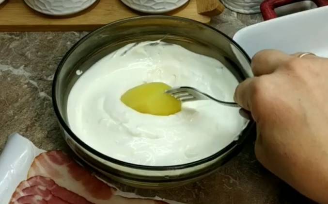 Картофель запеченный с беконом и сыром в сметане в духовке