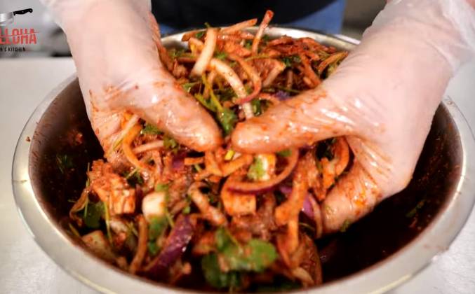 7. Мы ездили в командировку с одним корейцем и он к своим родителям там заехал. У него родителе проживали в Чекалы. Поселок такой там есть. Они первый раз меня накормили Хе из судака. Потом, второй раз меня уже научили как делать Хе из карпа. Потом я готовил, и в последнее время позабыл, что можно приготовить Хе. Дети как-то дома его не особо едят, поэтому и не было причины готовить. Сейчас для вас я хотел показать этот рецепт. Главный ингредиент это кинза. Кинза обязательна. Срезаем корешки и вместе со стеблями нарезаем не мелко. Вот такими частями. Отправляем к рыбе. Тщательно перемешиваем. В принципе блюдо готово, но оно должно настояться часов 6 холодильнике. Лучше сутки. Лук промаринуется, все ингредиенты подружатся. Не любите кинзу - лучше другую зелень не добавлять. Именно кинза в этом блюде самое то. Таким же образом можно готовить Хе из говядины, из курицы, из овощей каких-то. У корейцев очень много рецептов. Приправа практически и ингредиенты одни и те же.