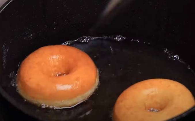 3. Готовим на среднем огне. Периодически переворачиваем и обжариваем до равномерного золотистого цвета с обоих сторон. Главное следить, чтоб пончики не подгорели, так как они очень быстро готовятся!