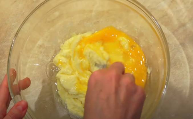 2. И хорошо перемешиваю. В тесто я добавила 460 граммов муки. И смотрите, тесто у меня получилось мягкое, вот, совсем немножко липнет к рукам, это очень хорошо, смотрите. Совсем немножко, но не остается на руках. Значит, тесто у нас готово, сейчас мы его или в пищевую пленку, или в кулек, что у вас есть. Заворачиваем. И кладем в холодильник на 20 минут. Прошло 20 минут, тесто я вынула из холодильника. Вот такое замечательное тесто у нас. Берем небольшой кусок теста и формируем тонкую колбаску.