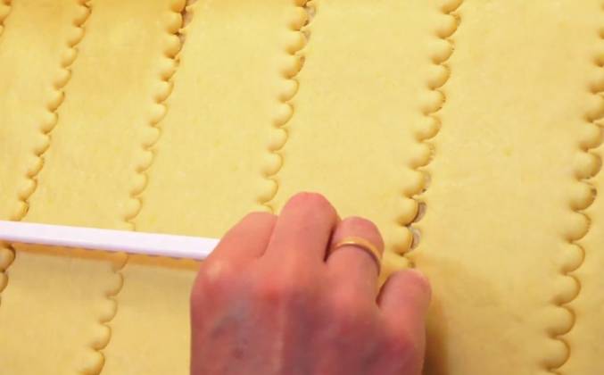 3. Я же с помощью трафаретной линейки буду формировать печенье. В общем на этом этапе проявляйте свою фантазию. Теперь смазываем желтком. И посыпаем сахаром. Теперь выкладываем на противень. Противень я застелила пергаментной бумагой. Ставим в духовку и выпекаем 15-20 минут при температуре 180 градусов.Видео рецепт ютуб ниже 👇