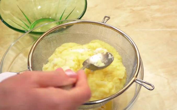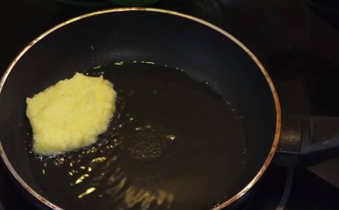 2. Теперь солю. Солим по вкусу, еще очень хорошо перемешаем, пусть лишняя жидкость уйдет у нас через сито. Посмотрите сколько и перекладываем в тарелку. На сковородку вливаем растительное масло. Теперь на разогретую сковородку выкладываем наши драники, я это делаю с помощью ложки, не делаю их слишком большими чтобы они хорошо прожарились с двух сторон. И обжариваем до золотистой корочки с двух сторон.