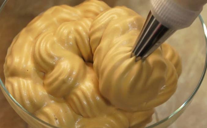 2. Взяла я вот такой кондитерский мешок. Масса наша готова. Попробуем сделать красоту с помощью кондитерского мешка. Можно украсить еще шоколадом. Так как крем очень концентрированный мы его используем в сочетании с молоком. Наливаем пол стакана теплого молока и выкладываем сверху крем, при желании украшаем шоколадной крошкой. Получается капучино.