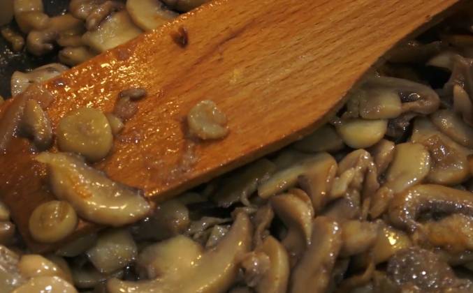 3. На разогретую сковородку выливаем растительное масло. И сыпем лук. Жарим пока он станет мягким и слегка золотистый. Лук у нас чуть-чуть поджарился и только начал менять цвет, мы всыпаем грибы. Я ещё добавляю немного растительного масла и перемешиваю. Жарим грибы, пока они не уменьшатся в объеме и не испарится вся жидкость. Жидкость испарилась, грибы приобрели такой золотистый оттенок. Мы выключаем. Пусть они остынут. Теперь с помощью блендера измельчаем грибы. Фасоль. И сыпем соль. Вот у нас такая вкусная масса получилась. Намазываем наши блинчики. И скручиваем трубочкой. Разрезаем и ложим в тарелку. Невероятно вкусные постные блинчики с начинкой готовы. Этот рецепт простой и легкий, а главное очень вкусный.Видео рецепт ютуб ниже 👇