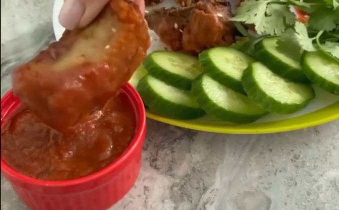 2. Ребрышки нарезать порционно, Хорошо обтереть маринадом, накрыть крышкой/пленкой и оставить минимум на 4 часа.