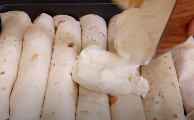 6. Для того, чтобы запечь сметана добавляем новый вкус и немного компенсирует остроту энчилада в общем, я использую сметану, отправляем в духовку на 180 градусов, 25 минут. Дегустация. Все вкусно! Приятного аппетита! Посмотрите другие мои рецепты.Видео рецепт ютуб ниже 👇