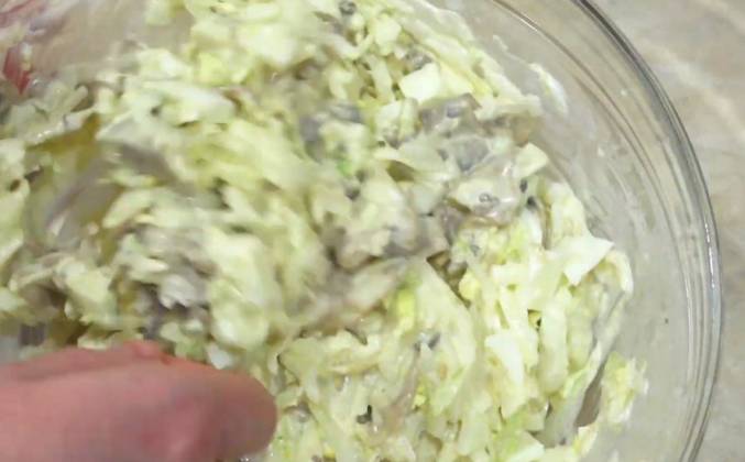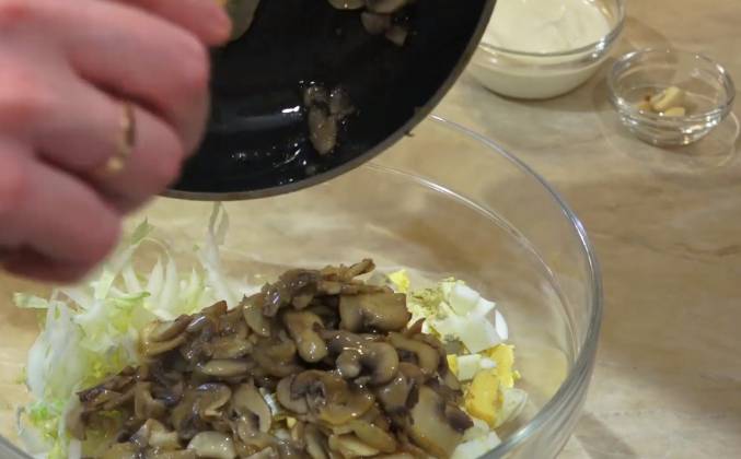Как приготовить Вкусный салат с шампиньонами и пекинской капустой рецепт пошагово
