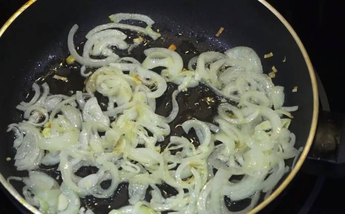 2. Грибы уменьшились в объеме отдали свой сок, ставим сейчас на большой огонь и ждем пока вода испарится, чтобы быстро поджарить грибочки наши. Солим наши грибочки. Вода ушла, поэтому еще немного жарим их и все. Вкус конечно ароматный. Нам нужно, чтобы воды не было. Прожариваем их хорошо. Грибочки наши готовы, выключаем и оставляем, пусть немного остынут. А пока маленькими кубиками нарезаем яйца. Сюда же забрасываем наши грибочки.