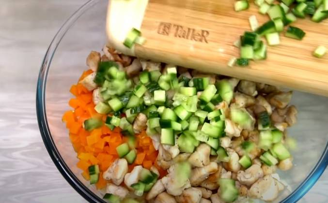 Как приготовить Салат оливье с курицей и свежим огурцом рецепт пошагово