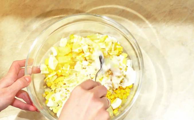 Как приготовить Праздничный салат грудка с ананасами и кукурузой рецепт пошагово