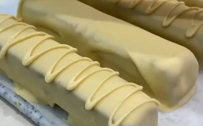 5. Достаем батончики из морозилки, окунаем в растопленный шоколад и выкладываем на ровную поверхность, застеленную пергаментной бумагой. По желанию, делаем узор. Убираем в холодильник до застывания шоколада и храним в холодильнике.Видео рецепт ютуб ниже 👇