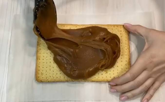 3. Накалываем вилкой и выпекаем в разогретой до 180 градусов духовке 15-20 минут (до золотистого цвета). Даем полностью остыть. ⠀ Собираем батончики: На полностью остывшее печенье выкладываем остывшую карамель и убираем в морозилку на ночь. Чтобы карамель не стекала с печенья - лучше использовать форму с бортиками или обмотать края печенья с карамелью пергаментной бумагой или фольгой. ⠀