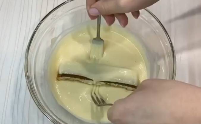 4. После этого достаем и разрезаем на 8 батончиков. Снова убираем в морозилку на 15 минут. Шоколад растапливаем в микроволновке или на водяной бане.