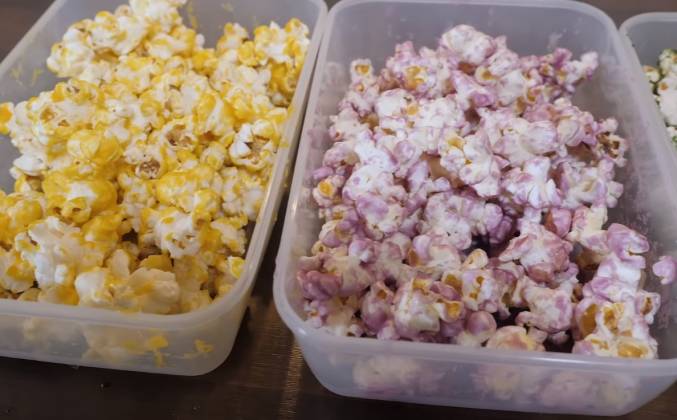 3. Если у вас есть желание и время вы можете попробовать и скинуть мне в инсту или в ВК если у вас получилось и имело ли это смысл - возможно, я возьму реванш. По большому счету если вы хотите удивить себя и друзей то можно попробовать покрасить попкорн с помощью пищевого красителя. Тут все просто: берем одну часть сахара и пол части воды делаем из этого сахарный сироп. Тут важно чтобы он не был слишком жидкий иначе вы размочите попкорн. Разливаем по емкостям, в моем случае это стакашки, и добавляем пищевой краситель можно жидкий можно порошковый. Размешиваем выливаем в попкорн и перемешиваем. Вуаля! Сладкий и разноцветный попкорн готов. Если заморочиться то можно сделать радугу флаг портрет вождя - простор для творчества. Если ты досмотрел до этого момента то значит ролик очевидно тебе понравился и уместно будет поставить лайк. Спасибо!Видео рецепт ютуб ниже 👇
