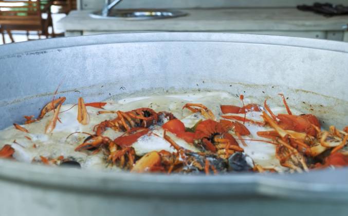 3. И так мы сделаем со всеми раками. Наш бульон прокипел полчаса и теперь мы ,раков опускаем. При варке раков, чтобы они были сочные и напитанные, есть небольшой нюанс раков нужно закладывать спиной вниз в этом случае из под панциря выходит воздух и они тонут, напитываются бульоном. Варить нужно только живых раков У мертвого рака хвост прямой не загнутой Если рак хоть немного чем-то пахнет - лучше его отложить в сторону, чтобы ,не дай бог, не отравится сами раки это - очень диетический полезный продукт в них на 100 грамм мяса всего 97 калорий и 0,9 процентов жиров они состоят из белка в основном единственное противопоказание тем людям у кого аллергия на белок, а в остальном это полноценный диетический продукт диетологи даже рекомендуют фитнес спортсменам, хоть один прием пищи заменять раками, это конечно не недешевое удовольствие, но красота требует жертв.