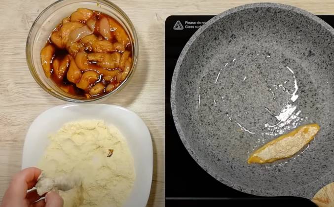 Как жарить курицу на сковороде в муке с медом