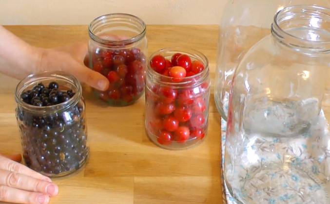 Как варить компот из ягод на зиму? Июнь самый ягодный месяц года. И из ягод мы варим варенье, перетираем их сахаром, замораживаем и закрываем компоты. Сочетая разные ягоды можно приготовить вкусный и полезный напиток. Зимой такие банки с компотом из ягод открываются с большим удовольствием и никакие магазинные напитки вам будут не нужны. Одну банку компота я закрою из смородины, вторую банку ассорти из черешни и вишни. Черешня не имеет ярко выраженного вкуса, поэтому я добавляют к ней вишню.