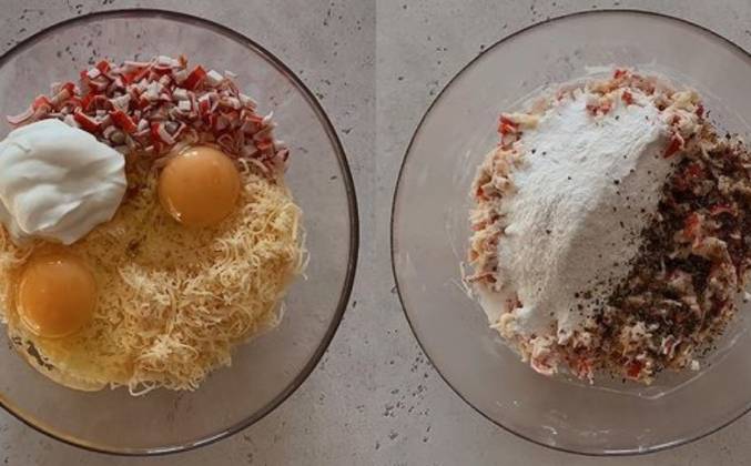 Как приготовить Оладьи из крабовых палочек с сыром рецепт пошагово