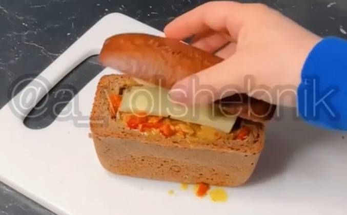 3. Сверху кладём ещё ломтик сыра и накрываем хлебной корочкой. Ещё раз отправляем в духовку на 10 минут чтобы сыр расплавился и хлебушек вкусно хрустел. Все готово. Вкусный, сытный гуляш в хлебе готов.Видео рецепт ютуб ниже 👇