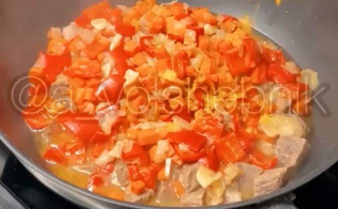 2. Смешиваем мясо и овощи, добавляем специи по вкусу, солим, перемешиваем и тушим 15 минут. Берем хлеб, вытаскиваем мякиш и отправляем в духовку для того чтобы появилась хрустящая корочка. Затем выкладываем на дно хлеба сыр и заполняем гуляшом.